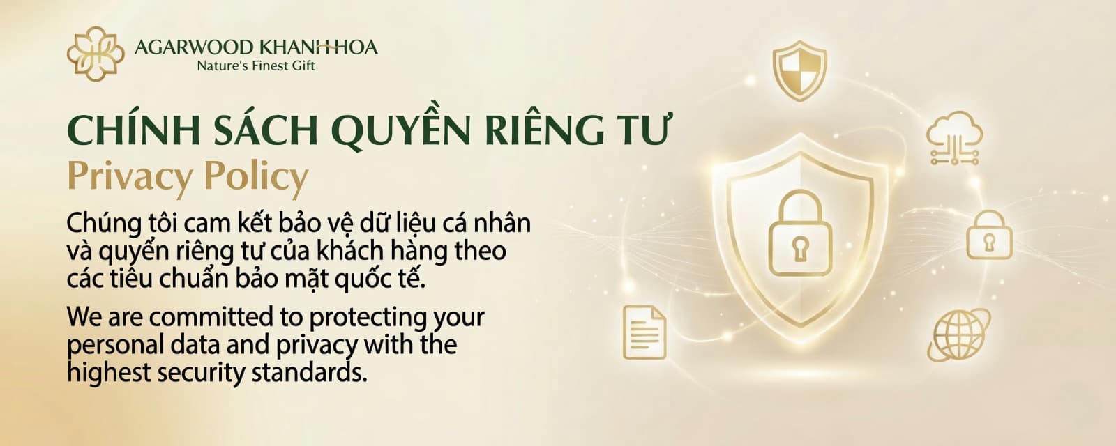 1. Giới thiệu và phạm vi áp dụng Chính sách Bảo mật này giải thích cách Viện Nghiên cứu và Phát triển Trầm Hương Khánh Hòa (sau đây gọi là “chúng tôi”, “Viện”) thu thập, sử dụng, lưu trữ và bảo vệ dữ liệu cá nhân của bạn khi bạn truy cập và sử dụng website https://agarwoodkhanhhoa.com, mua hàng, đăng ký tài khoản, nhận bản tin hoặc tương tác với chúng tôi bằng bất kỳ hình thức nào.